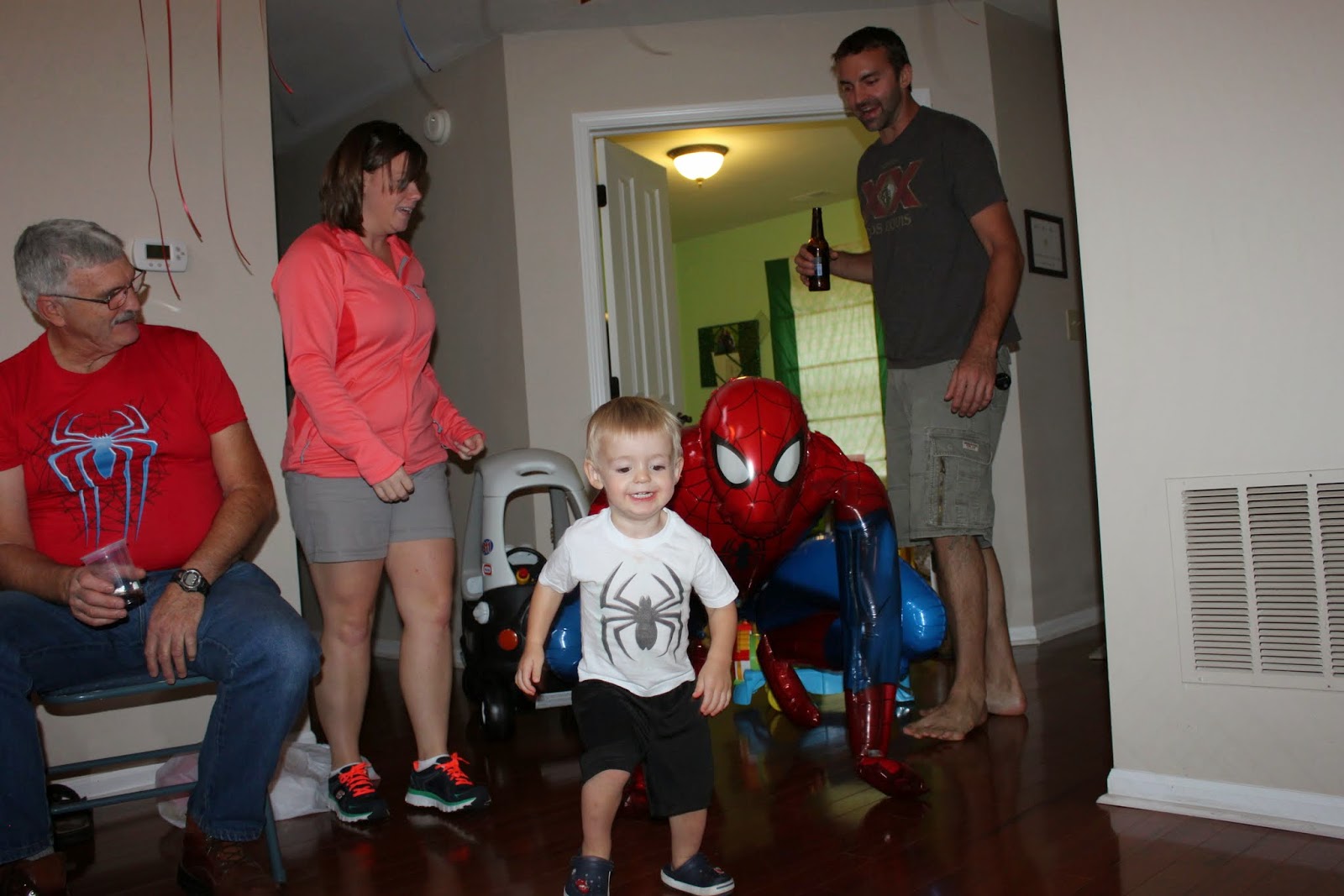 After present opening, Tyler got in to a minor skirmish with the Spider-man balloon.